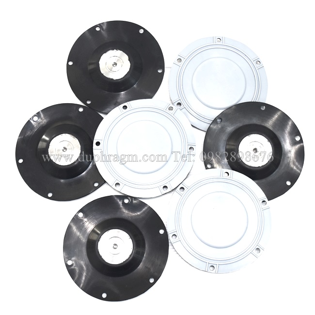 ยางไดอะแฟรม EPDM ติดน๊อตขนาด DIA .127.82 mm เป็นยางไดอะแฟรมเสริมไนล่อน 1 ชั้น เคลือบด้วย PTFE 0.5 mm ยืดติดด้วยน๊อต SUS 304