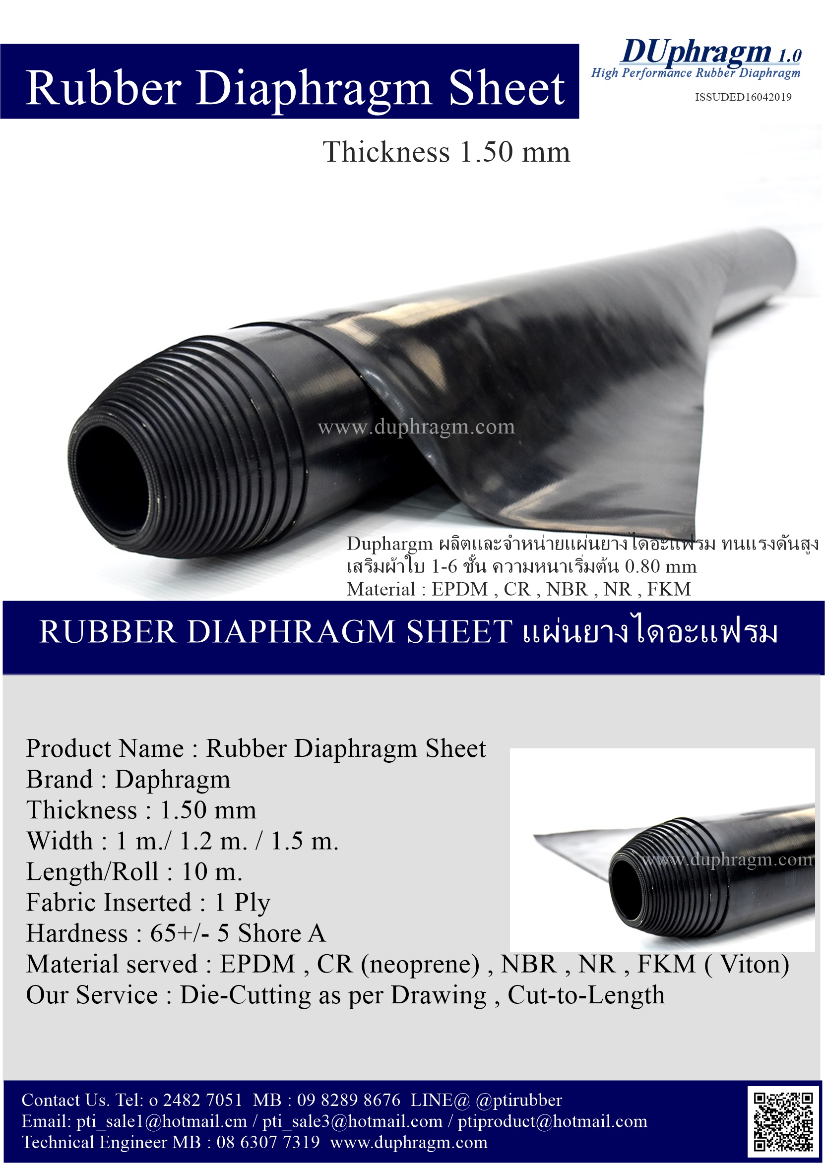 DuPhragm เราจำหน่ายและรับผลิตยางไดอะแฟรมHNBR ( HNBR Rubber Diaphragm) หลากหลายแบบการใช้งานทั้งแบบขึ้นรูป Molded HNBR Rubber Diaphragm , แผ่นยางไดอะแฟรมHNBR (HNBR Rubber Sheet) , ยางไดอะแฟรมHNBRเคลือบ PTFE ( PTFE Coated HNBR Rubber Diaphragm) , Die-cutting HNBR Rubber Diaphragm เป็นต้น